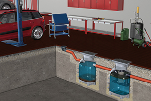 Aby se minerální oleje nebo lehké kapaliny (zejména ty hořlavé popř. tvořící výbušnou atmosféru) v prostorech garáží, autodílen apod. nemoly dostat do kanalizační sítě, musí být za odtokovými body osazeny separační systémy.